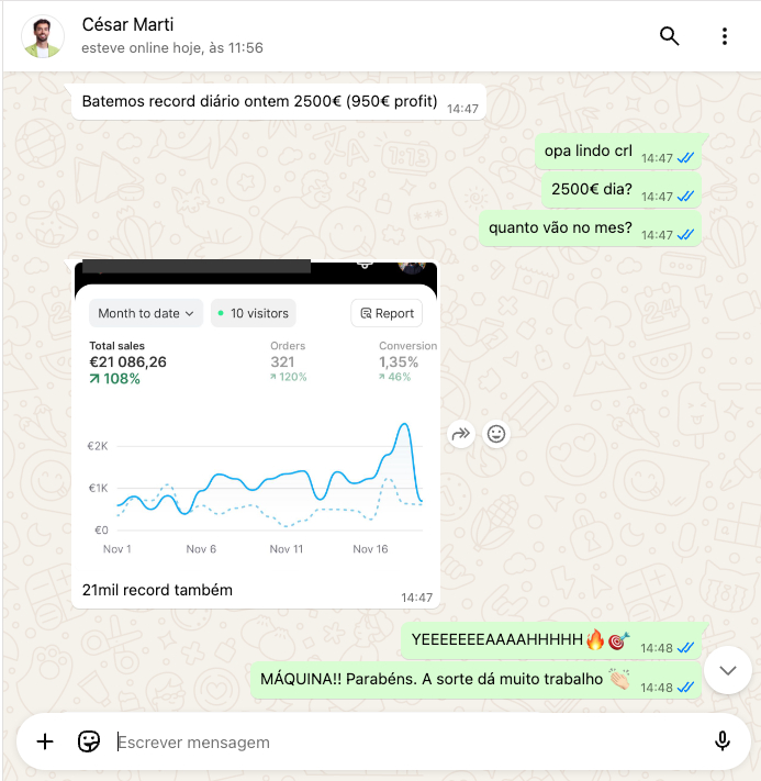 Nesta comunidade podes esperar conteúdos e conversa de entre-ajuda e também contacto com grandes empresários Portugueses que faturam Milhões € com Ecommerce.
