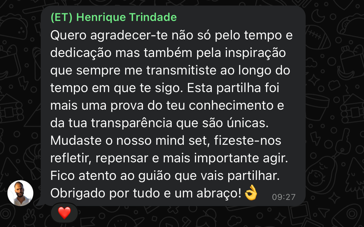 Ao efetuares a tua inscrição, autorizas o acesso imediato a todos os conteúdos e ao acompanhamento incluído, começando assim a prestação do serviço logo após o pagamento.