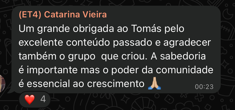 A comunidade é dos maiores benefícios que terás aqui. E como garantia de que os teus colegas são uma vantagem para ti, os membros serão todos selecionados a dedo.